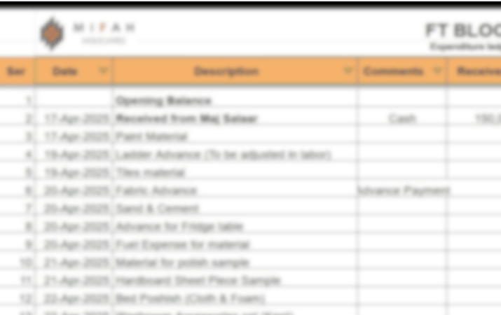 MIFAH Associates was established with a mission to bring financial transparency to Pakistan’s construction industry—an area often clouded by opacity and mismanagement. We are proud to pioneer the use of a real-time online ledger system, enabling clients to monitor project expenses, disbursements, and material costs with clarity and accountability throughout the project lifecycle.